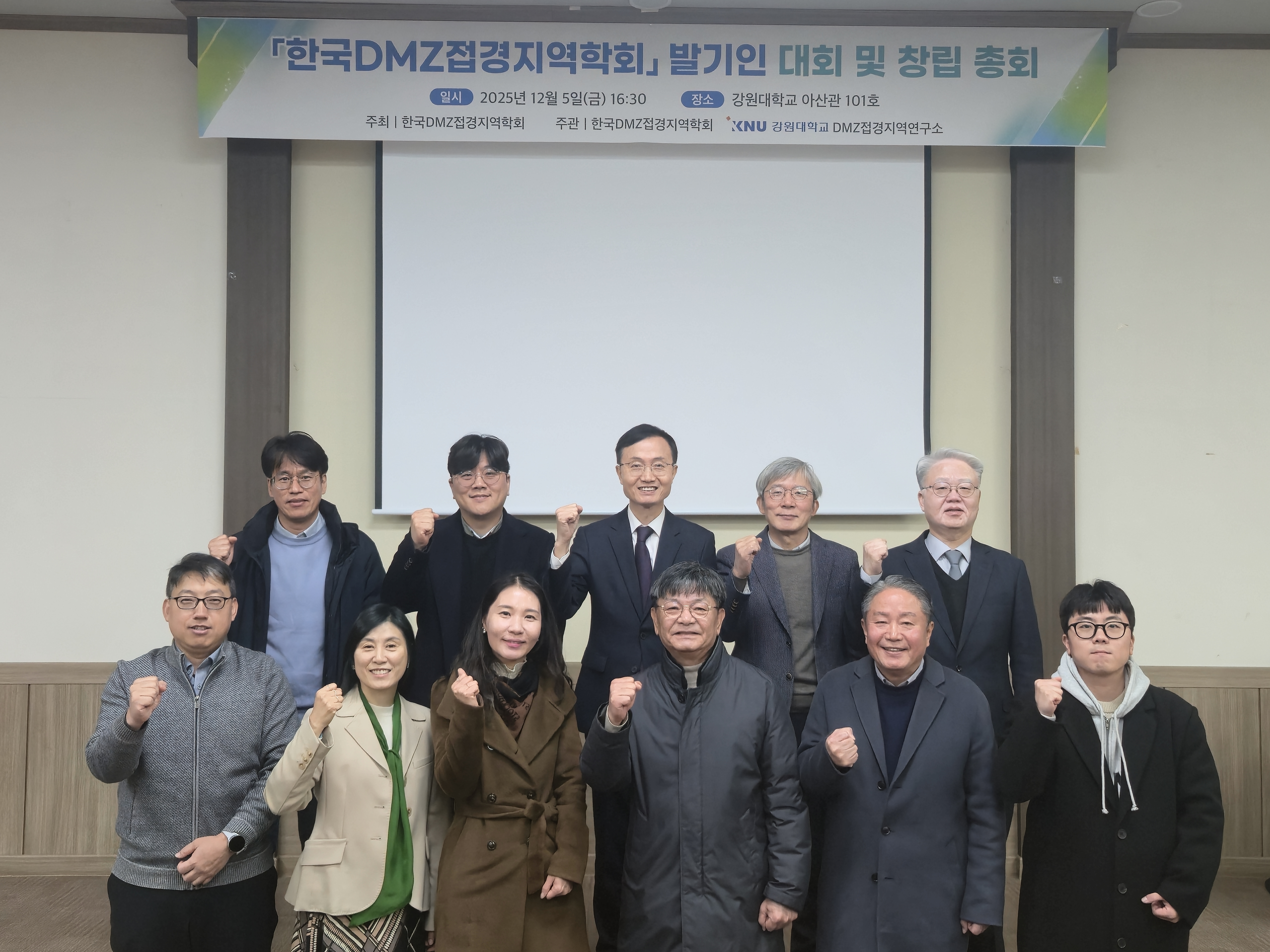 연말이라 참석인원이 많지는 않았지만, 발기인에 동참하신 50여 분의 연구자들과 함께 DMZ와 접경지역의 지속가능한 발전을 위해 힘쓰고자 학회가 발족되었다. 2025년 12월 5일이 창립일로 기록될 것이며, 초대 회장으로 본 연구소 소장인 김창환 교수가 선출되었다.